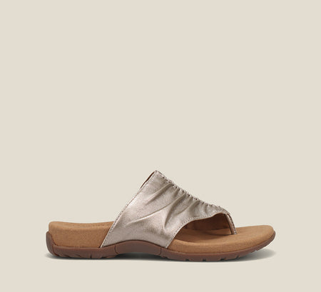 This is the gift that keeps on giving. Sumptuous leather with hand-stitched scrunch pleating makes Gift 2 the ideal sandal for times when you want a little more coverage. Taos Soft Support™ features our premium footbed with arch and metatarsal support and Cool Recovery Foam®.