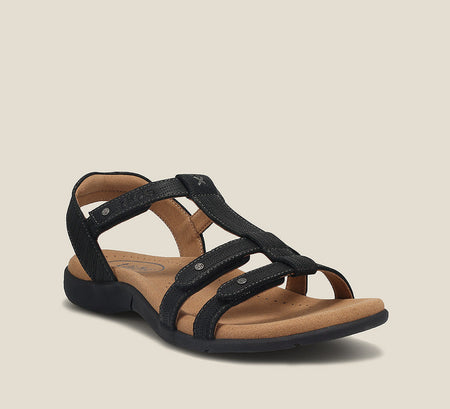 This beautiful, strappy leather sandal is bound to be the new trophy in your wardrobe. The fully adjustable straps help accommodate different widths as well as insteps. Outstanding comfort comes from the Taos Soft Support™ premium footbed with Cool Recovery Foam®. The arch and metatarsal support gives you comfort while alleviating pressure from the ball of the foot.