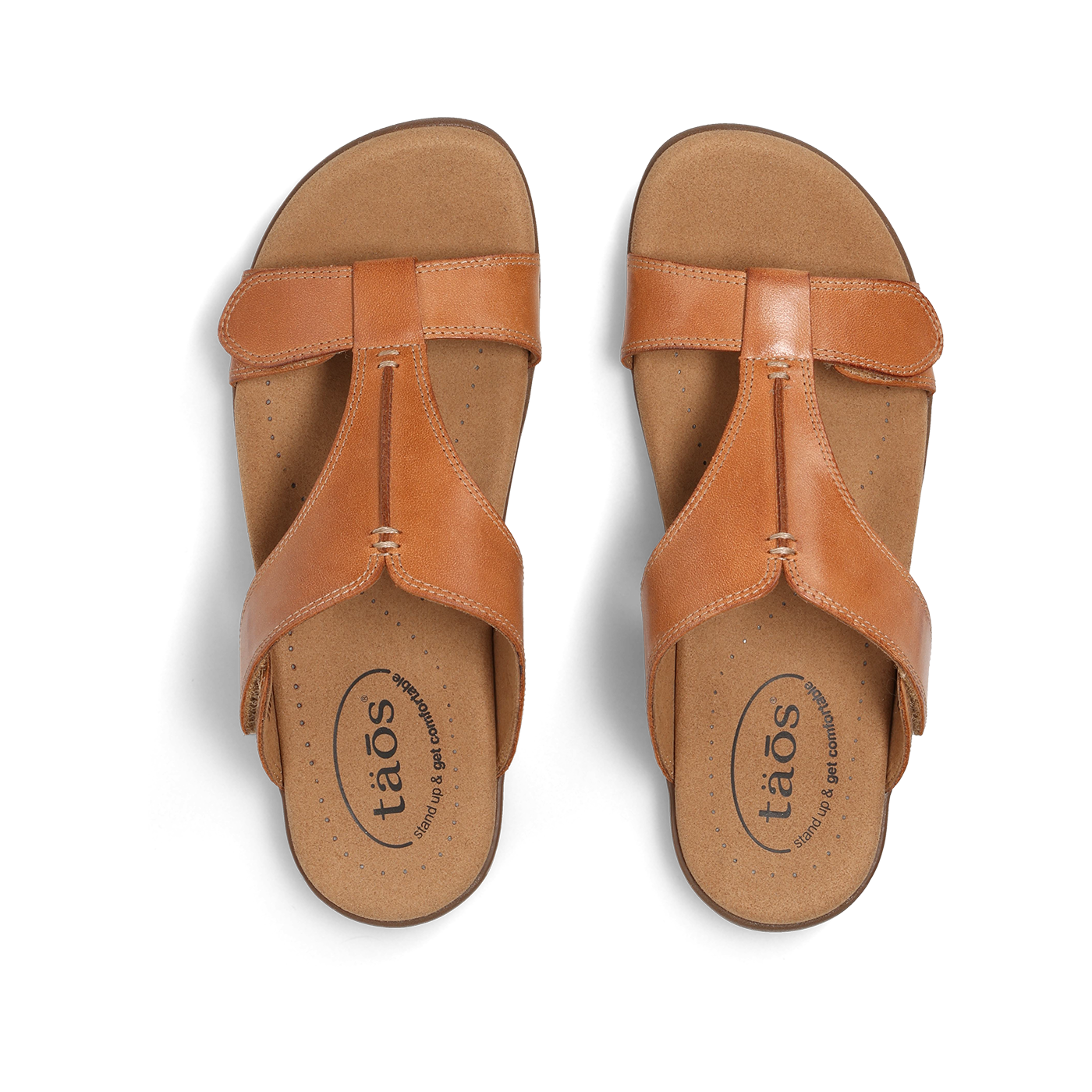 Slide Show is everything you love about our customer-favorite sandal, The Show, but in a slide version! The premium leather sandals offer a patented shield strap design and two adjustable hook and loop straps for a secure fit. Detailed contrast stitching and seam design accent the upper. Featuring soft Italian leather, these sandals provide a rich look and feel. Soft Cool Recovery Foam® padding and our SOFT SUPPORT™ sandal construction provide maximum support and shock absorption. The embossed microfiber footbed is treated with an antimicrobial shield to keep feet cool and dry. The outsoles are flexible, durable rubber.