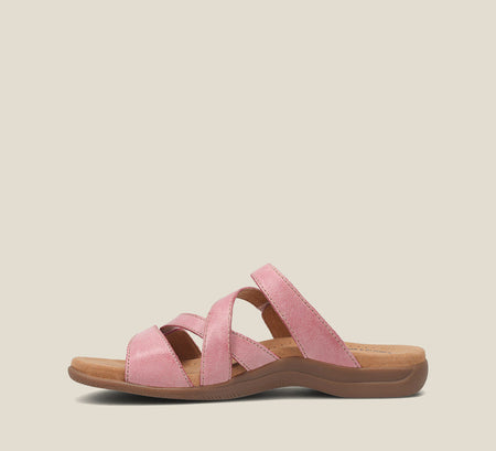 Double U offers you a strappy sandal look, with exceptional comfort for all day wear.  Premium leather slide sandal with two adjustable hook and loop straps for a customized fit. Featuring an embossed microfiber footbed that is treated with an antimicrobial shield, keeping your feet cool and dry, with soft Cool Recovery Foam® padding for maximum shock absorption. The outsoles are flexible, durable rubber.