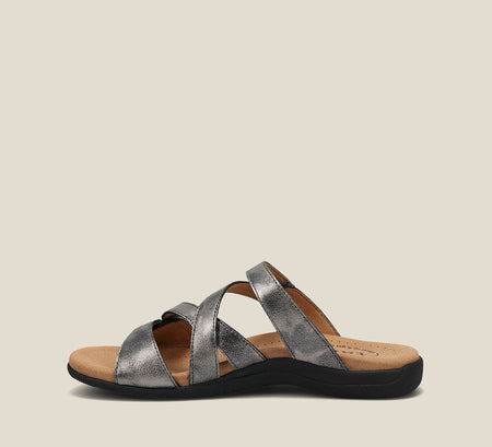 Double U offers you a strappy sandal look, with exceptional comfort for all day wear.  Premium leather slide sandal with two adjustable hook and loop straps for a customized fit. Featuring an embossed microfiber footbed that is treated with an antimicrobial shield, keeping your feet cool and dry, with soft Cool Recovery Foam® padding for maximum shock absorption. The outsoles are flexible, durable rubber.