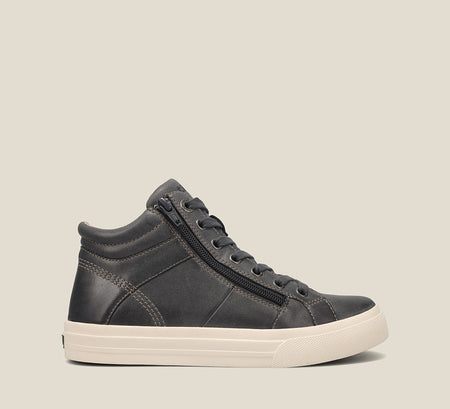Winner is a high top, lace up leather sneaker. Featuring our Curves & Pods® removable footbed, and flexible, durable rubber outsoles. While also having a thicker and higher sidewall for a youthful look, we also added an outside zipper for easier accessibility.